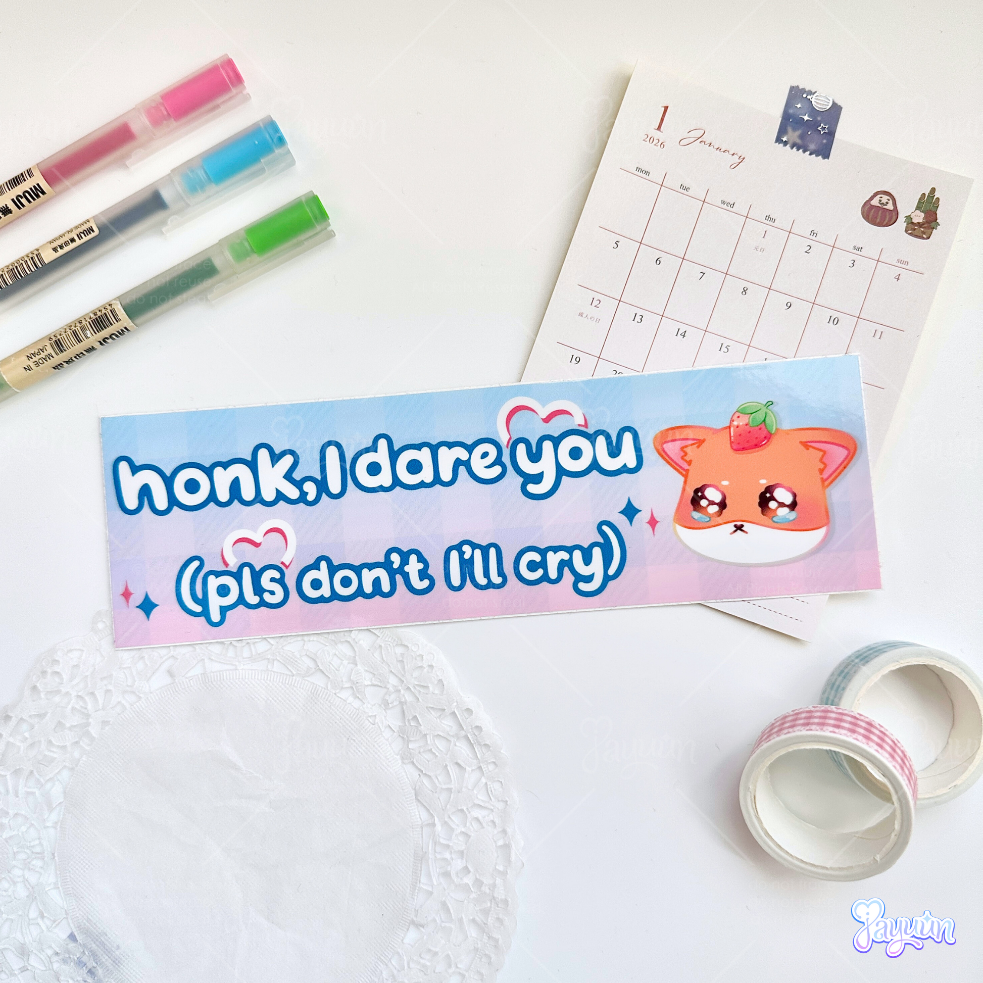 This is a super cute, funny anxiety-themed bumper sticker to decorate your car with! Yuuni the Shiba Inu has some driving anxiety, and if you relate, slap this onto your bumper to let others know~