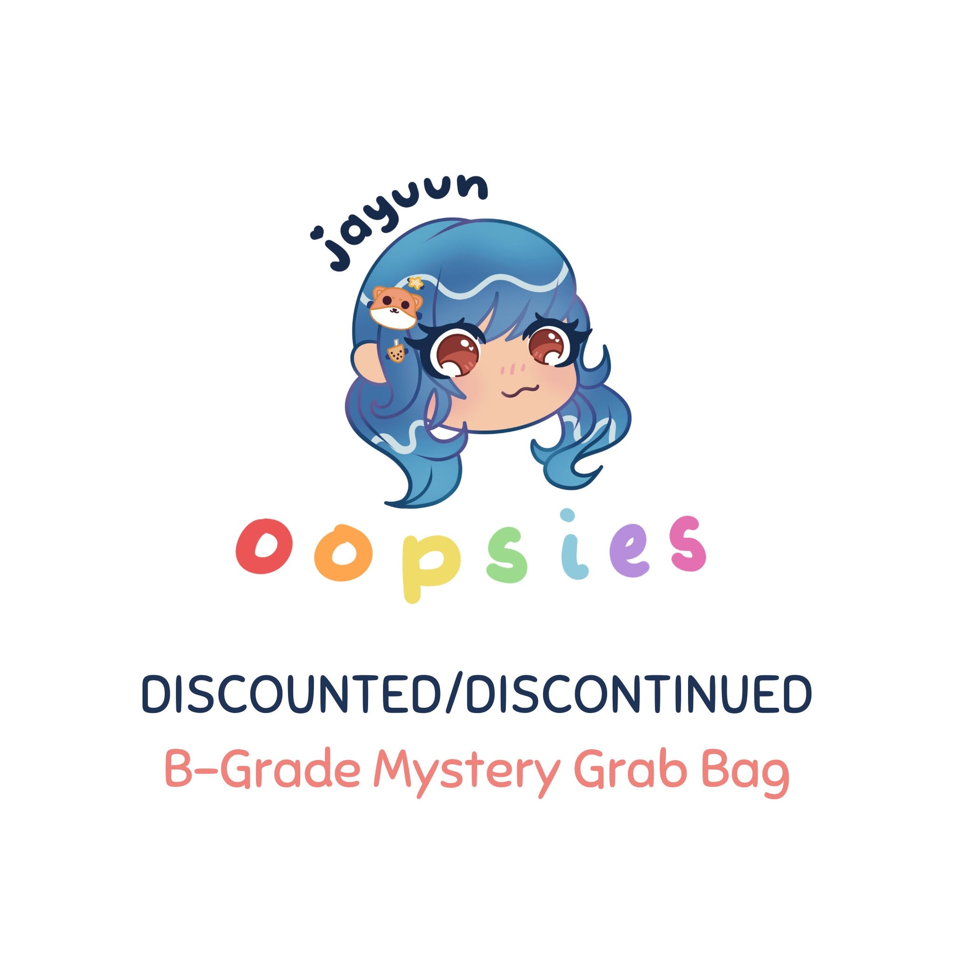 This oopsies bag contains at least 3 B-grade stickers (guaranteed) from my shop; they are random and contain minor defects! You may also receive discontinued or extras.