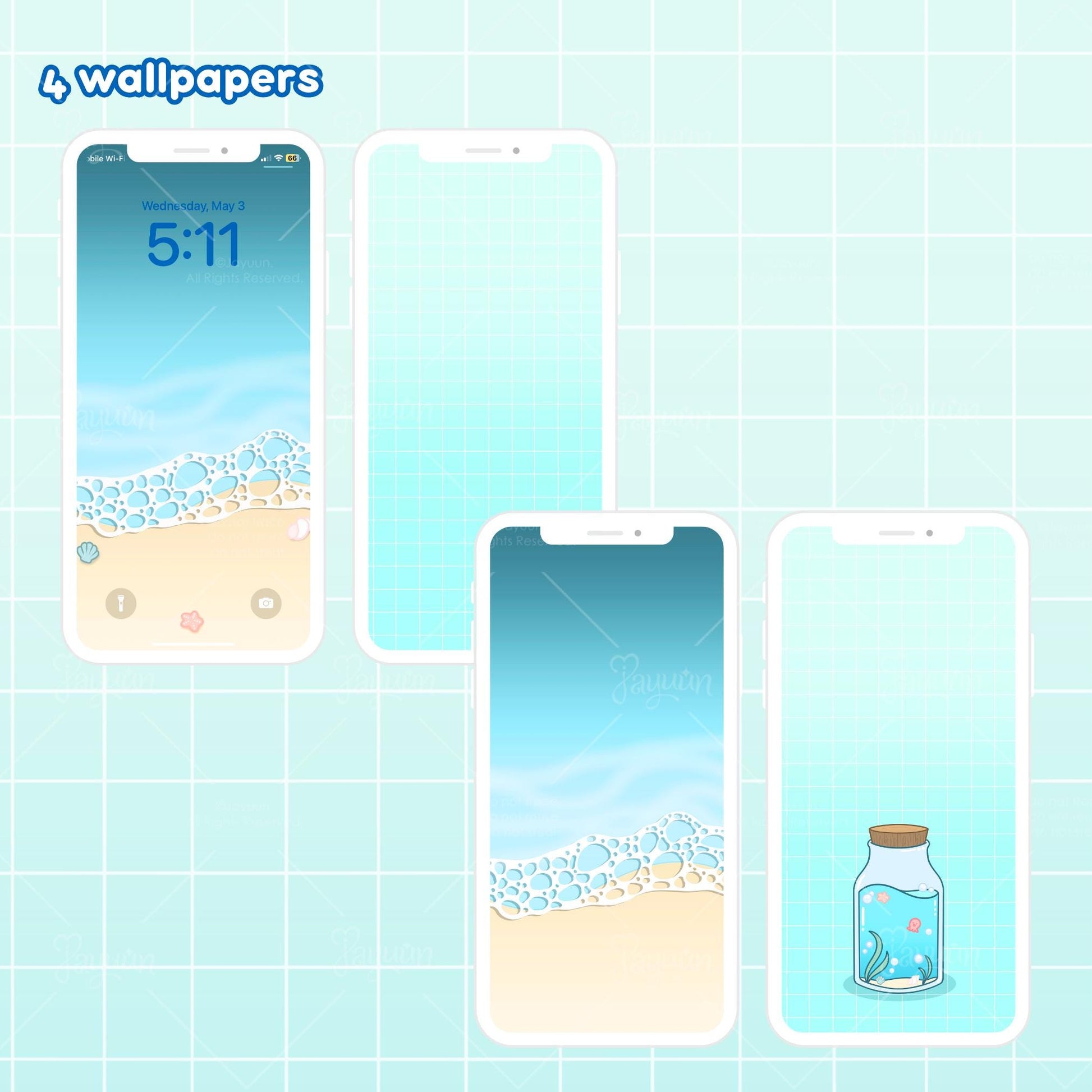 It features a seasonal, hand-drawn phone customization theme, creating a cute and kawaii aesthetic for your summer and beachy needs.