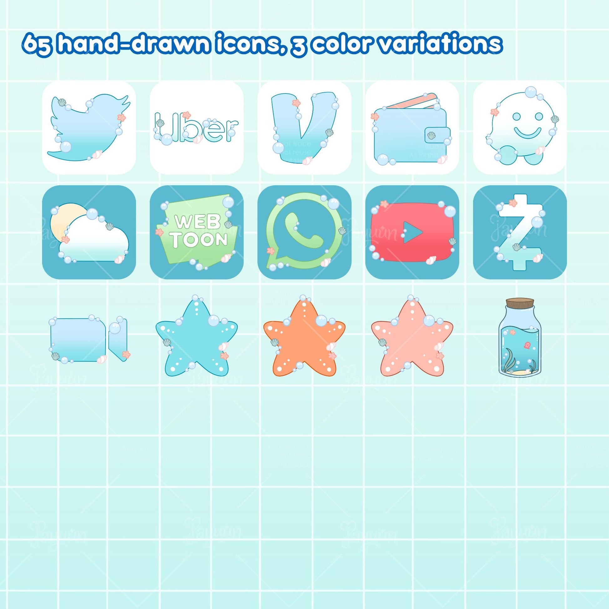 This app icon set is a Summer Bubbles themed digital icon pack!